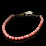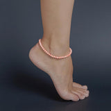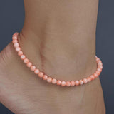 Pink Coral beads anklet with a size of 4 millimeters, comes with 18-karat heavy gold plated chain clasp.