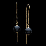 Black Glossy Onyx Earrings with a bead size of 12 millimeters, comes with 18-karat heavy gold plated chain hook.