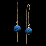 Chain Hook Blue Druzy Quartz Earrings, 14mm
