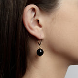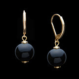 Black Glossy Onyx Earrings with a bead size of 12 millimeters, comes with 18-karat heavy gold plated french clasp.