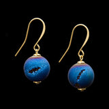 Blue Druzy Quartz Earrings with a bead size of 14 millimeters, comes with 18-karat heavy gold plated french hook.
