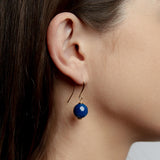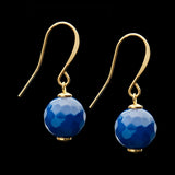 Blue Faceted Agate Earrings with a bead size of 12 millimeters, comes with 18-karat heavy gold plated french hook.