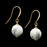 Glossy Howlite Earrings with a bead size of 12 millimeters, comes with 18-karat heavy gold plated french hook.