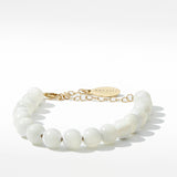 Bracciale di perle di conchiglia di Trochus Niloticus bianco con una dimensione di 8 millimetri, con chiusura a catena placcata in oro massiccio 18 carati. Lunghezza regolabile.