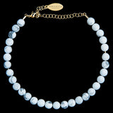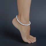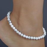 Cavigliera con perle Howlite opache bianche con una dimensione di 6 millimetri, con chiusura a catenina placcata in oro massiccio 18 carati. Lunghezza regolabile.